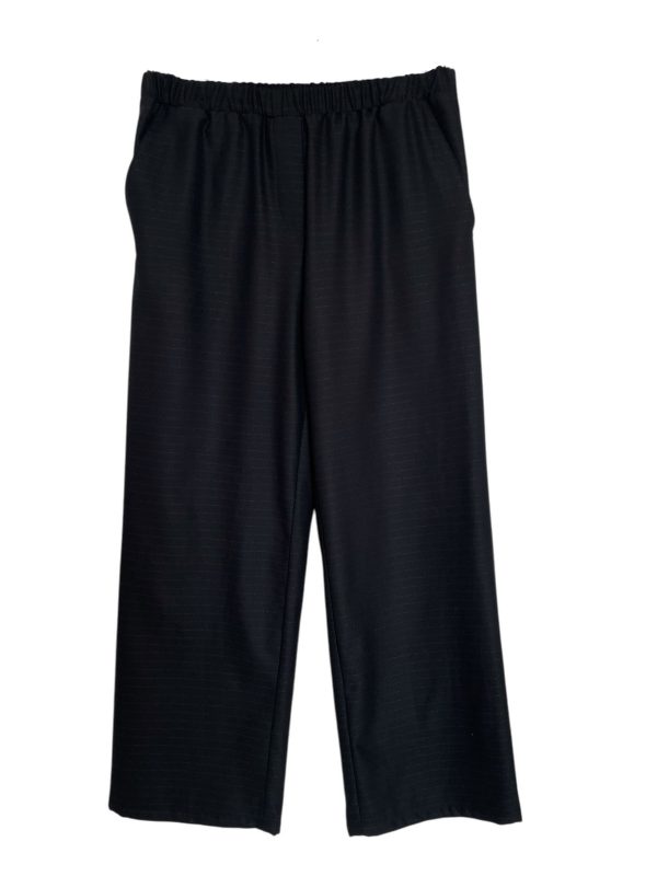 The easy to wear elegant stretch elastic waist pull-on pants with side and back pockets. Made of wool fabric, this pair is designed with high rise for a sleek fit.